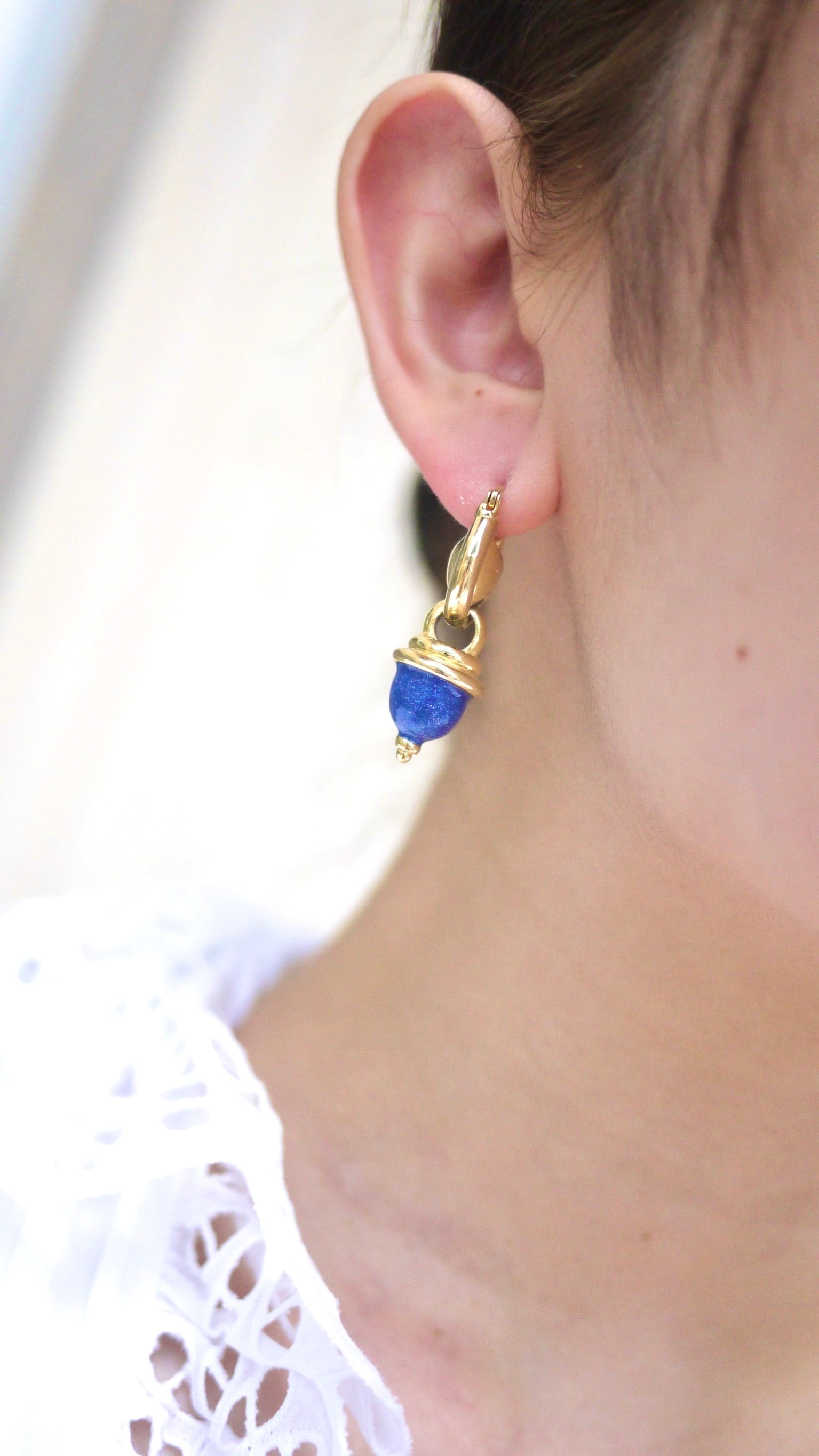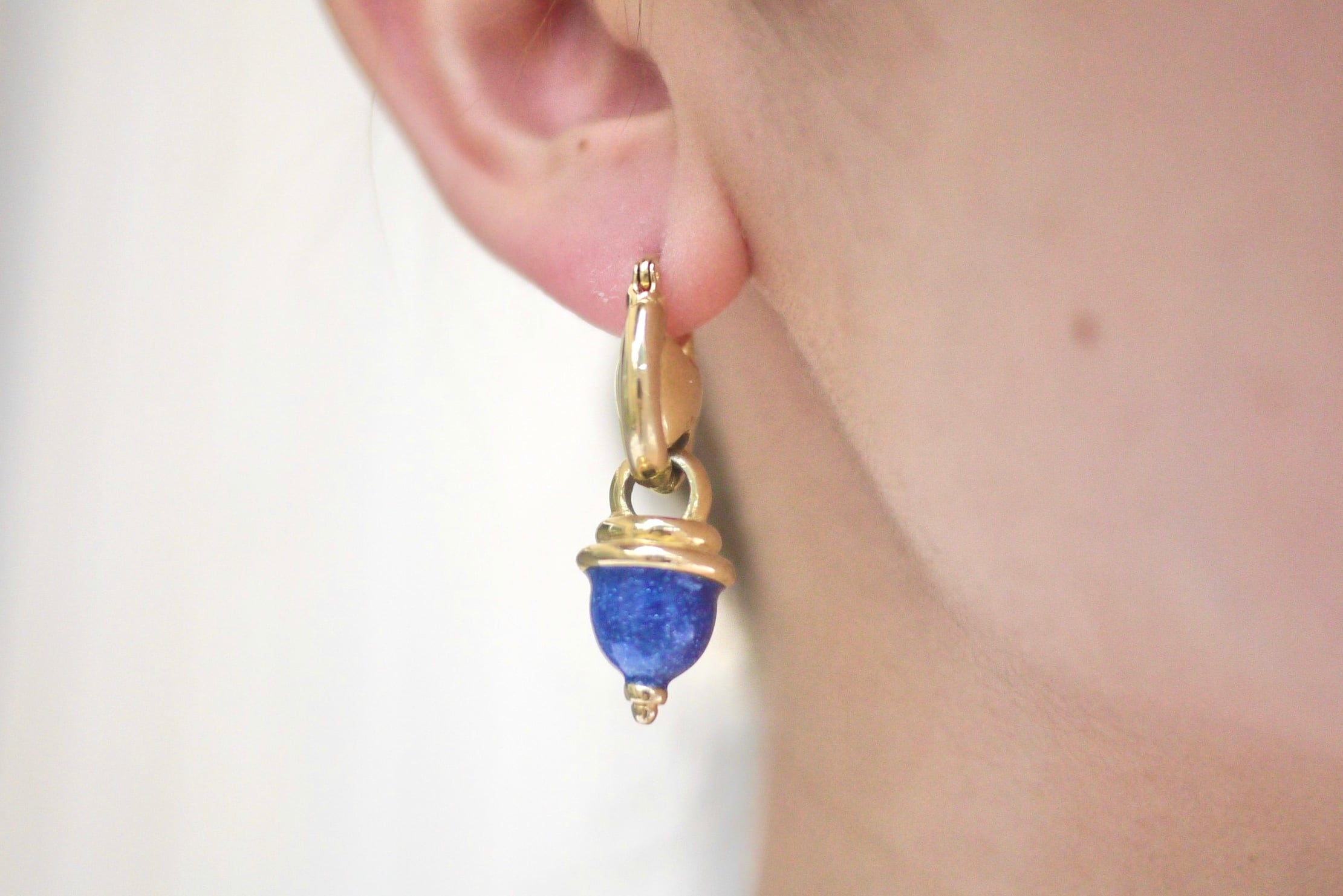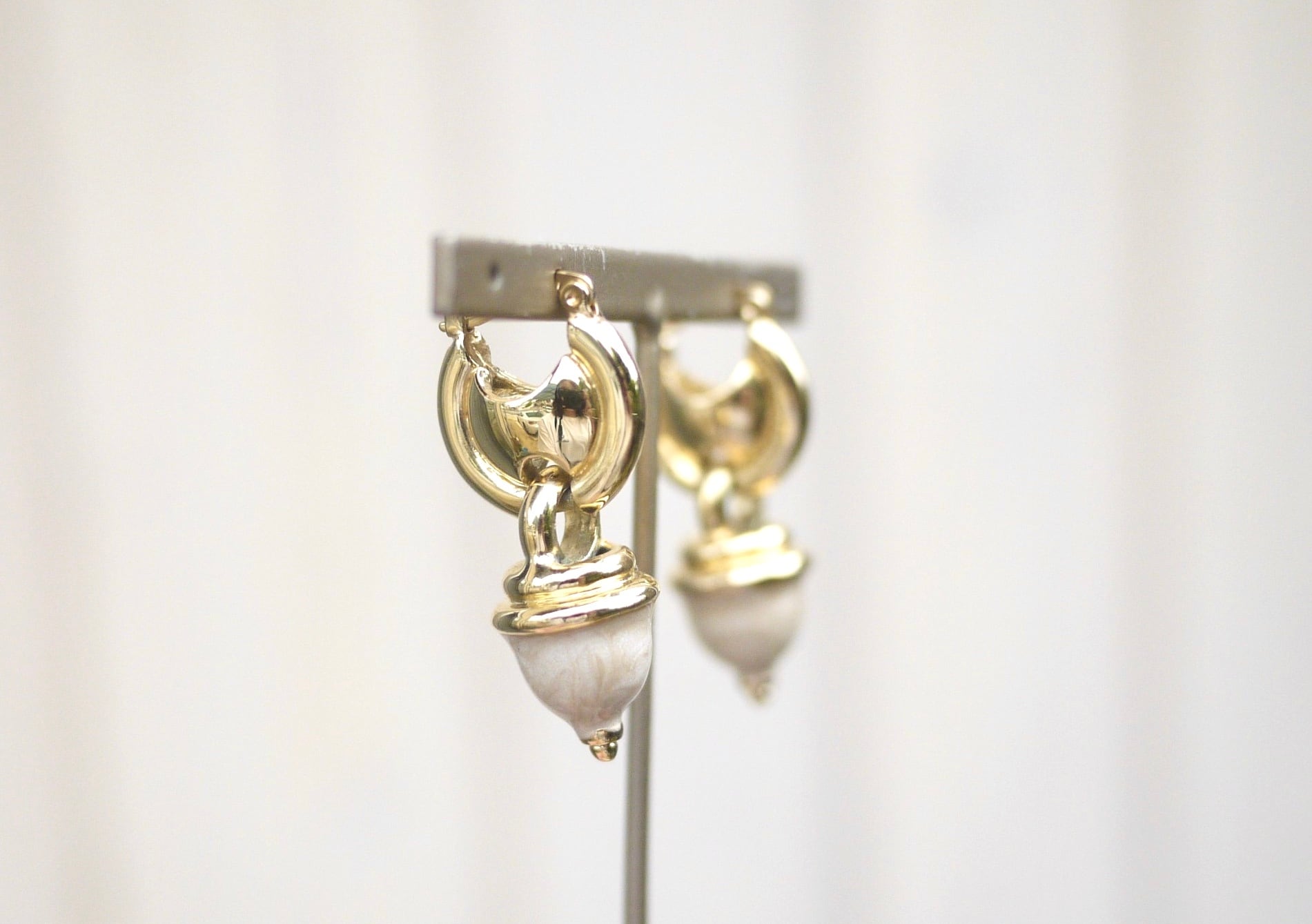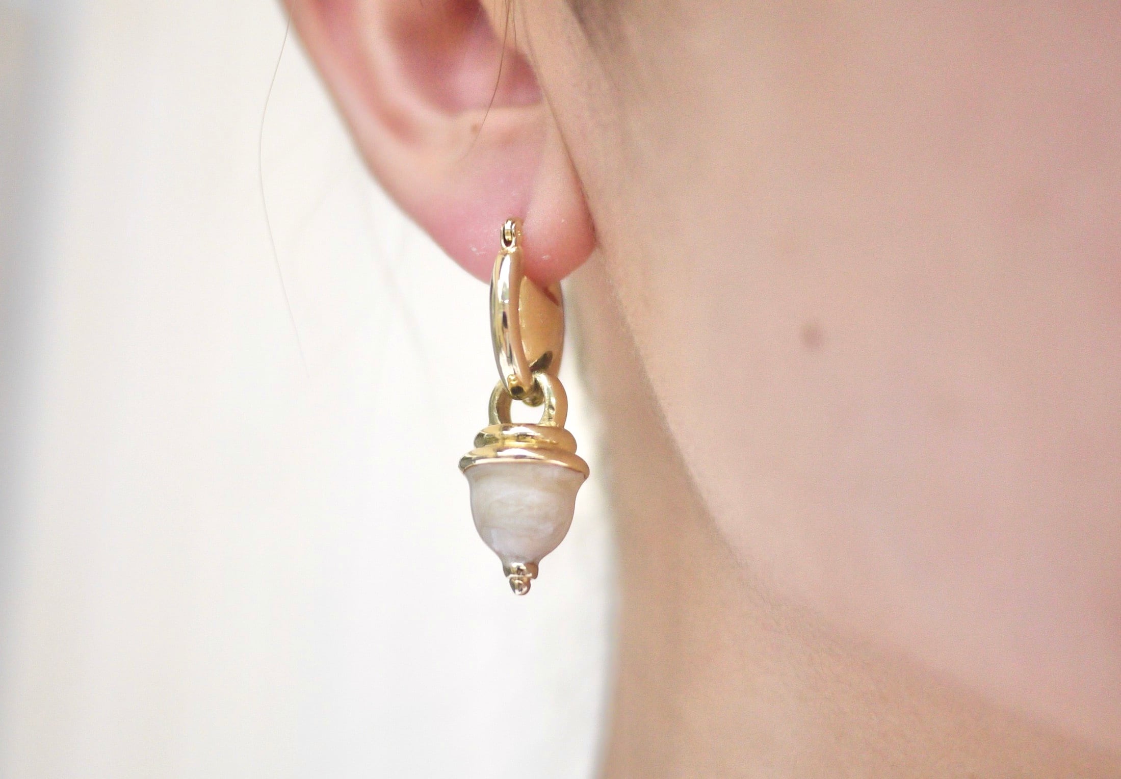 どんぐりみたいな可愛い形のモチーフが揺れるピアスです。